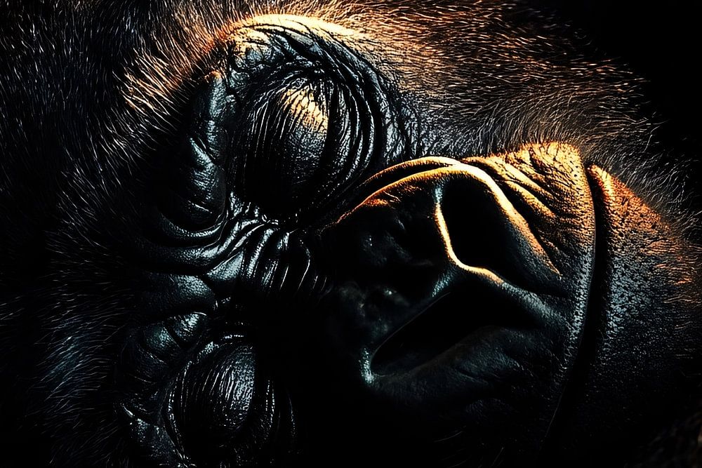 Dieses wunderschöne Design zeigt einen schlafenden Gorilla, der von weichen, warmen Lichtakzenten subtil beleuchtet wird. Der ruhige Look und die beeindruckenden Details machen dieses Bild perfekt für alle, die einen beruhigenden und eleganten Akzent in ihren Innenräumen suchen. Der Fokus auf Textur und Kontrast macht das Design zu einem wahren Kunstwerk, das sowohl beruhigend als auch inspirierend wirkt. Ideal für Schlafzimmer oder Büros, in denen eine ruhige Atmosphäre gewünscht ist.