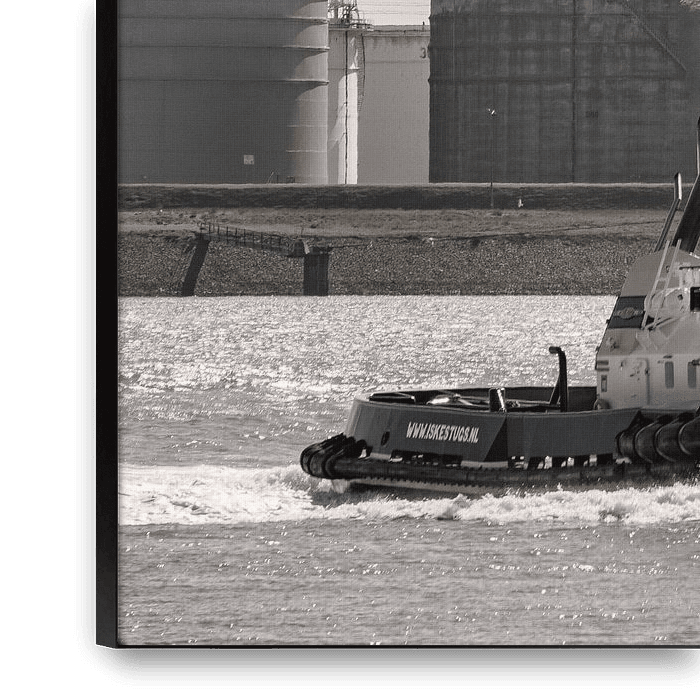 Der Schlepper Mars kommt für seinen nächsten Auftrag hierher. Dieses starke Boot ist im Hafengebiet von Rotterdam ständig in Bewegung. Sie hilft großen Tankern, aber bei großen Containerschiffen dreht sie nicht die Hand um. Von diesem Bild habe ich einen Schnitt gemacht. Der Hafen hat viele Gesichter, also fotografiere ich auch.