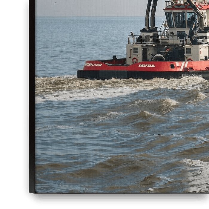 Bestelle das Foto Schlepper Waterland und Waterstream von Jan Georg Meijer als Reproduktion auf Leinwand, Alu-Dibond, als Poster, Fototapete oder Acrylglasbild.