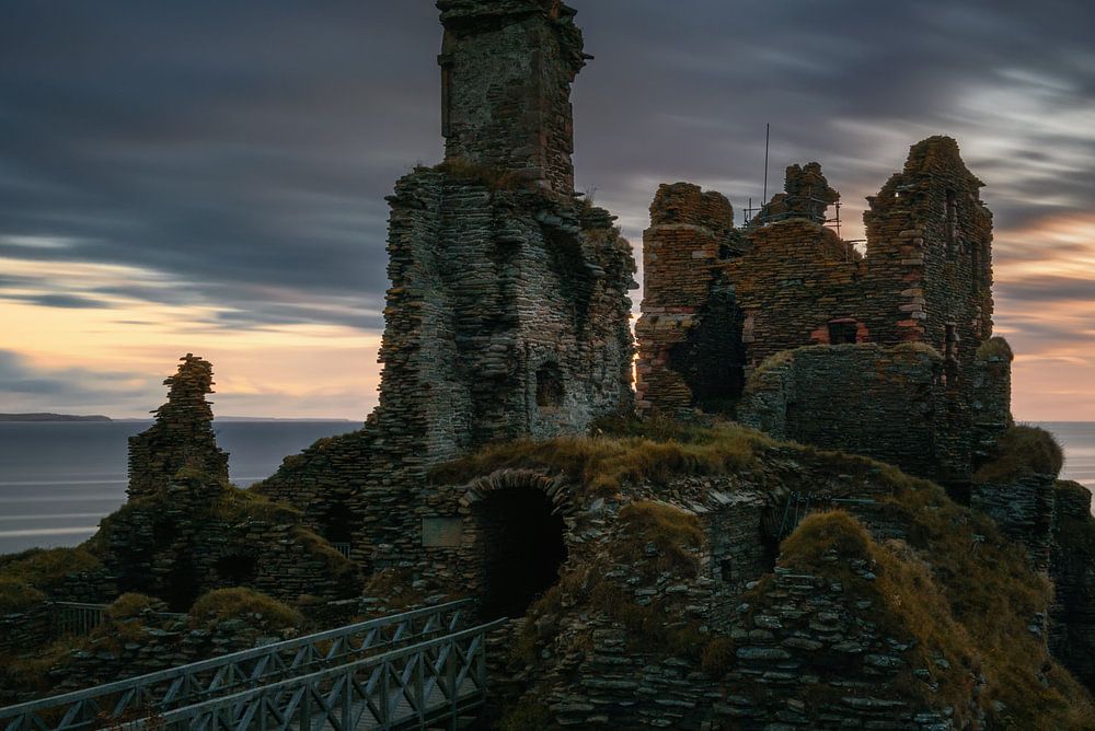 Castle Sinclair Girnigoe Klippen an der Ostküste Schottlands bei Sonnenaufgang