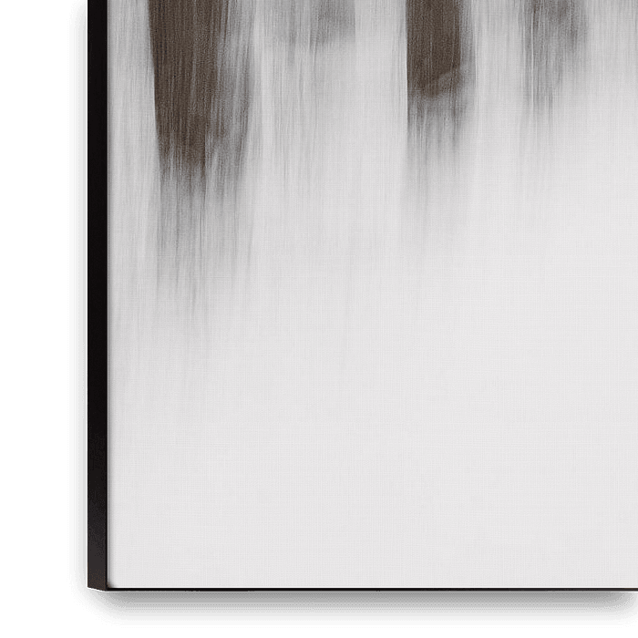 Bestelle dieses Landschafts-Wandbild Schnee im bewegten Wald in sanften Erdfarben von Imaginative als Reproduktion auf Leinwand, Alu-Dibond, als Poster, Fototapete oder Acrylglasbild.