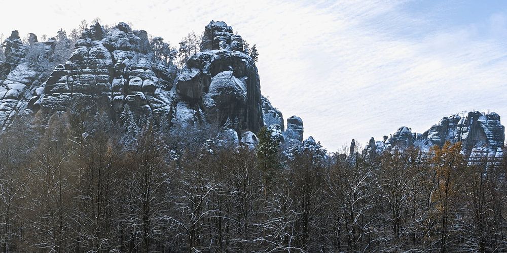 Ende November lag eine dicke Schneeschicht auf der Felsenwelt des Elbsandsteingebirges.