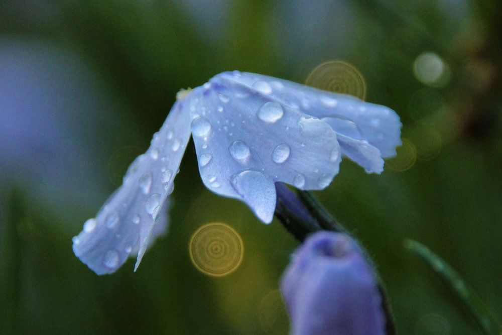 Diese Blume mit den Tropfen auf ihr ist sehr schön und klar. Es hebt sich ab, weil der Hintergrund unscharf ist. Ich habe dieses Bild auf Leinwand selbst in meinem Zimmer, und es ist wirklich schön. Es lohnt sich auf jeden Fall. Die Lens Flare Dots sind meiner Meinung nach nicht störend und geben dem Foto etwas.