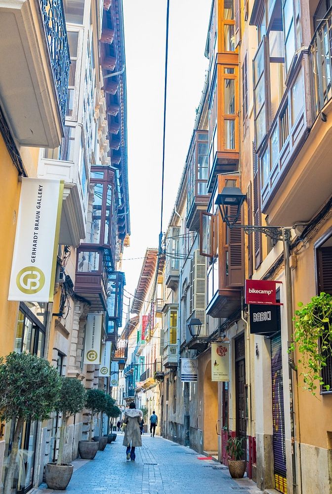 Schöne Gasse im historischen Stadtzentrum von Palma de Mallorca, Balearische Inseln