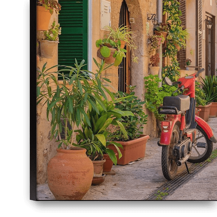 Bestelle das Foto Schöne Straße in dem mediterranen Dorf Valldemossa, Mallorca Spanien von Alex Winter als Reproduktion auf Leinwand, Alu-Dibond, als Poster, Fototapete oder Acrylglasbild.