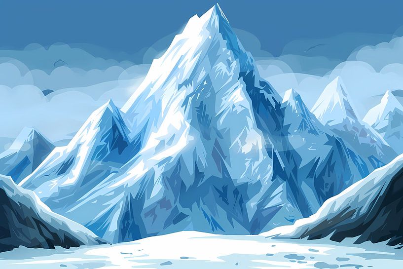 Dieses beeindruckende digitale Kunstwerk zeigt eine majestätische, schneebedeckte Bergkette. Die verschiedenen Blau- und Weißtöne fangen die eisige Kälte und die heitere Schönheit der Natur perfekt ein. Die Wolken schweben geheimnisvoll über den Gipfeln und vermitteln ein Gefühl von Ruhe und Frieden. Dieses Gemälde ist eine ideale Wahl…