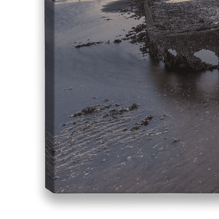 Sonnenuntergang auf dem Wattenmeer bei Wierum. Mit dem Wrack einer Praam im Vordergrund. Die Sonne geht langsam hinter den Wolken unter. Die Kirche von Wierum ist noch am linken Horizont zu sehen. Es ist ein ruhiger, aber kalter Abend. Das Wrack liegt etwa 100 Meter vor der Küste. Er ist nur bei Ebbe sichtbar. Um dorthin zu gelangen, muss man eine Weile über das Watt laufen. Es ist eine wunderbare Erfahrung, dort am Wrack stehen zu können.