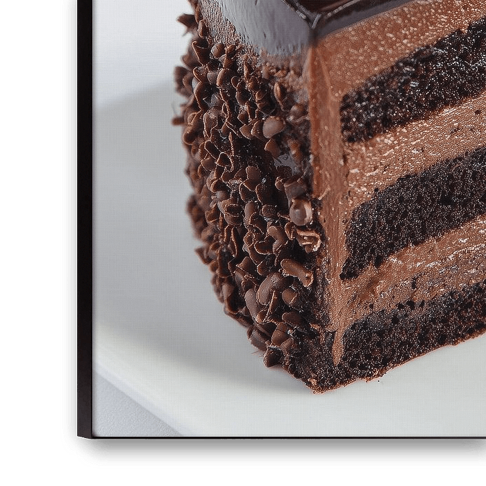 Das Bild Schokoladenkuchen mit Schlagsahne ist somit ein unwiderstehlicher Blickfang für alle, die Kunst mit einem Hauch von süßem Charme lieben.