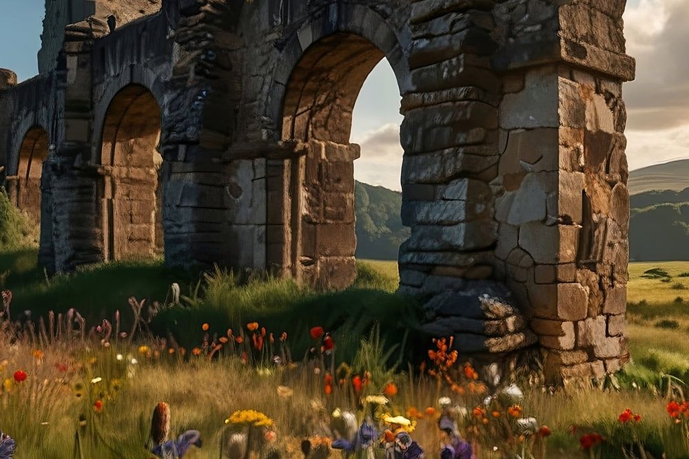 Die schottischen Highlands mit Burgen, Ruinen, Wildblumen, sanften Hügeln und Bergen. Diese raue Landschaft regt die Fantasie vieler Menschen an! Diese mit AI erstellten Bilder vermitteln einen schönen Eindruck davon, was wir uns unter Schottland vorstellen.
