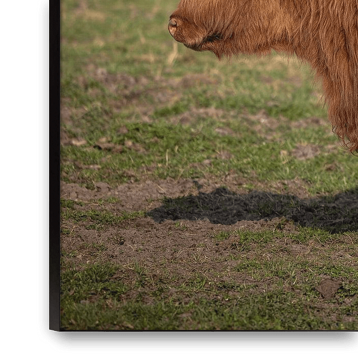 Bestelle dieses Schottische Hochlandrind Wandbild Schottischer Highlander in natürlicher Aktion von Triki Photography als Reproduktion auf Leinwand, Alu-Dibond, als Poster, Fototapete oder Acrylglasbild.