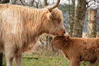 Bestelle dieses Schottische Hochlandrind Wandbild Schottischer Highlander mit süßem Kalb von Ans Bastiaanssen als Reproduktion auf Leinwand, Alu-Dibond, als Poster, Fototapete oder Acrylglasbild.