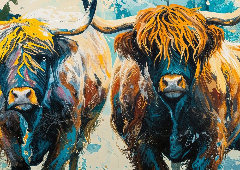Details: Kunst,Kuh,Schottischer Hochländer,Gemälde,Tier,Schottischer Hochländer