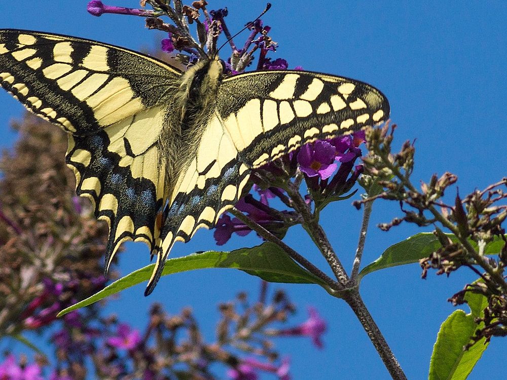 Ab und zu sitzt ein Schwalbenschwanz auf dem Schmetterlingsstrauch. Sie müssen nur zu Hause sein und Ihre Kamera in der Nähe haben. Manchmal hat man Glück.