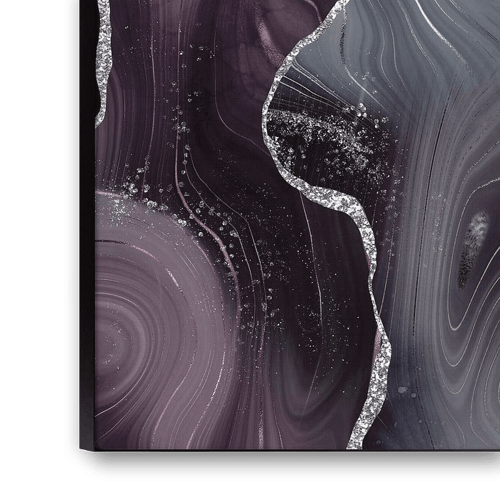 Bestelle dieses abstrakte Wandbild Schwarz & Silber Glitzer Achatstruktur 02 von Aloke Design als Reproduktion auf Leinwand, Alu-Dibond, als Poster, Fototapete oder Acrylglasbild.