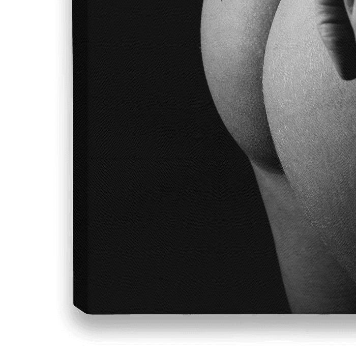 Bestelle das Foto Schwarz-Weiß-Foto einer nackten Frau, die ihren Tanga auszieht - sinnliche Kunst von Retinas images als Reproduktion auf Leinwand, Alu-Dibond, als Poster, Fototapete oder Acrylglasbild.
