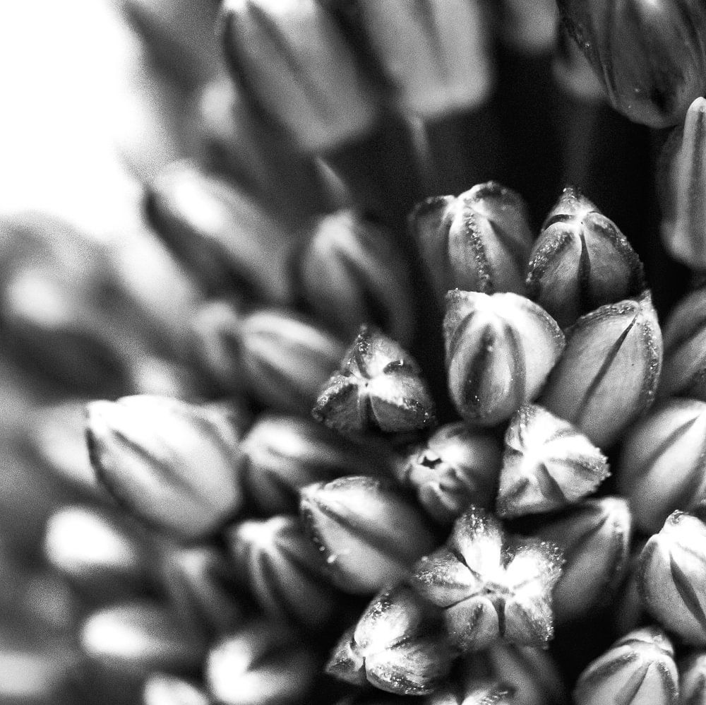 Schwarz-Weiß-Nahaufnahme einer Blume in Knospe
