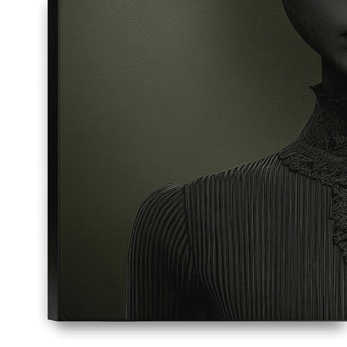 Das Bild zeigt eine eindrucksvolle Symmetrie, in der das Gesicht einer jungen Frau exakt in zwei Hälften geteilt ist. Die linke Seite ist tiefschwarz, während die rechte Seite in einem hellen Weiß erstrahlt. Diese Farbkontraste erzeugen eine faszinierende Spannung zwischen Licht und Schatten. Ihre Augen sind starr und durchdringend, als…
