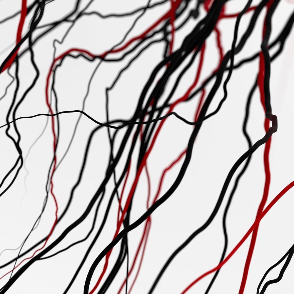 Abstraktes Bild mit venen-ähnlichen schwarzen und roten Tentakeln. Düster Grundstimmung.