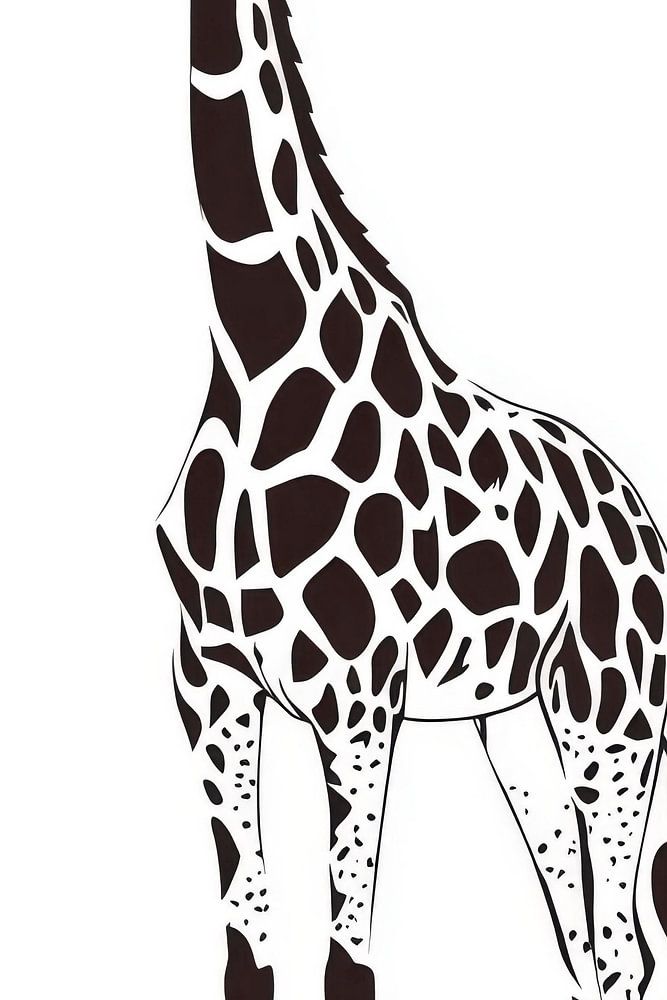 Das Bild zeigt eine stilisierte Giraffe in schwarz-weiß, die durch ihre beeindruckende Höhe und den charakteristischen Flecken hervor sticht. Die langen Beine und der elegante Hals verleihen ihr ein anmutiges Erscheinungsbild, während die kontrastreiche Farbgebung für einen modernen, grafischen Effekt sorgt. Ein faszinierendes Zusammenspiel von Einfachheit und Detailreichtum!