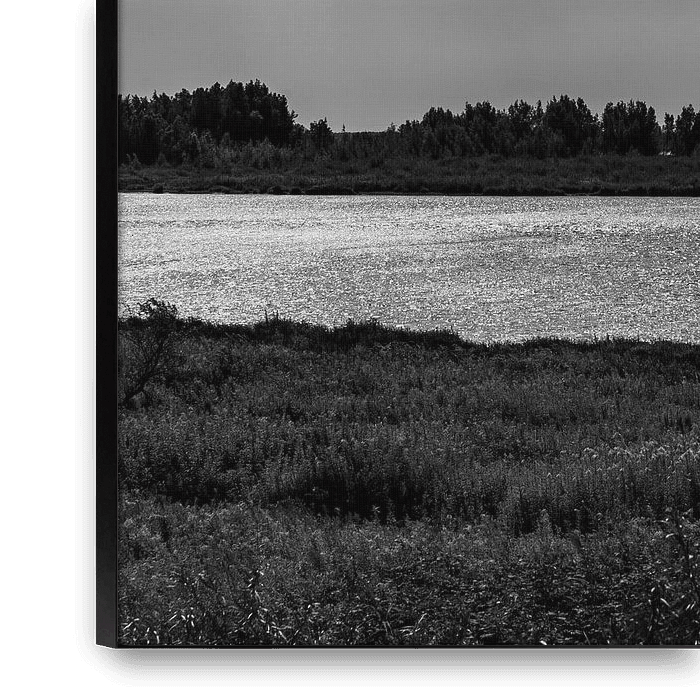 Durch die Abwesenheit von Farbe werden Formen, Linien und Kontraste hervorgehoben: die Spiegelung der Bäume im Wasser, die sanften Abstufungen im Himmel und die ruhige, fast meditative Leere zwischen…