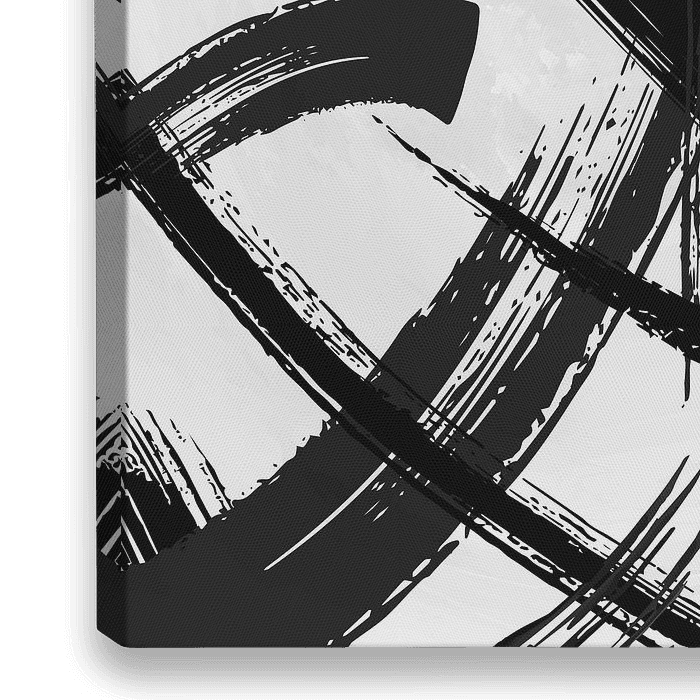 Bestelle dieses abstrakte Wandbild Schwarze Pinselstriche auf weißem Tuch von Inez Nina Aarts als Reproduktion auf Leinwand, Alu-Dibond, als Poster, Fototapete oder Acrylglasbild.