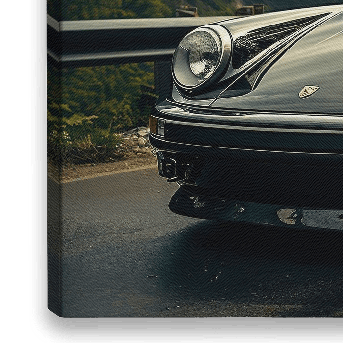Bestelle dieses Landschafts-Wandbild Schwarzer Porsche in Berglandschaft_9 von Bianca Bakkenist als Reproduktion auf Leinwand, Alu-Dibond, als Poster, Fototapete oder Acrylglasbild.