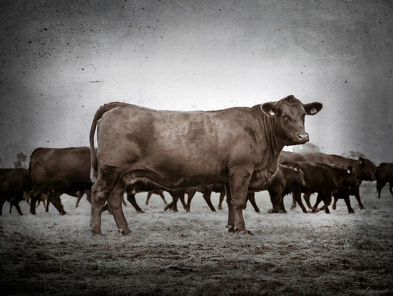 Ich durfte zusammen mit dem Bauern auf die Weide gehen. Die Kühe waren unruhig, als sie mich sahen, doch dann kam plötzlich diese Black-Angus-Kuh und posierte für mich. Ja, es kommt selten vor, dass sie so schön posieren.