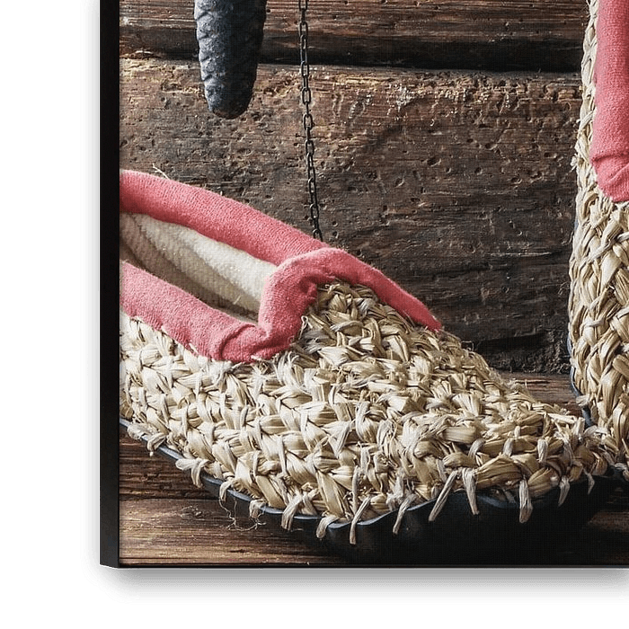 Bollenhut, traditoneller Schwarzwälder Trachtenhut der unverheitrateten Mädchen mit Strohschuhen und Kuckucksuhr auf rustikalem Holzuntergrund, Studiofotografie