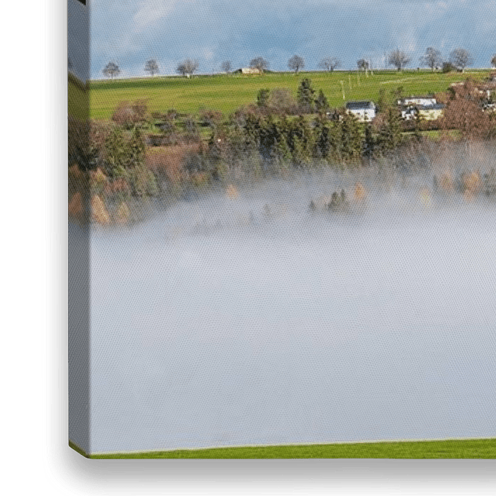 Wenn man an den Schwarzwald denkt, denkt man schnell an riesige dunkle Wälder, aber es gibt auch schöne offene Landschaften mit Hügeln und Dörfern. Wie hier oberhalb der Wutachschlucht. Die Feuchtigkeit des letzten Regens verdunstet in der Schlucht.