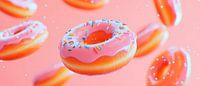 Schwebende Donuts vor pinkem Hintergrund von Poster Art Shop