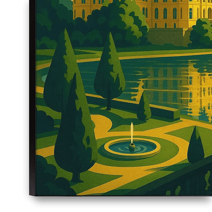 Bestelle dieses Landschafts-Wandbild Schwerin Reiseposter - Schloss Reflections Wandkunst von Travel Shop als Reproduktion auf Leinwand, Alu-Dibond, als Poster, Fototapete oder Acrylglasbild.