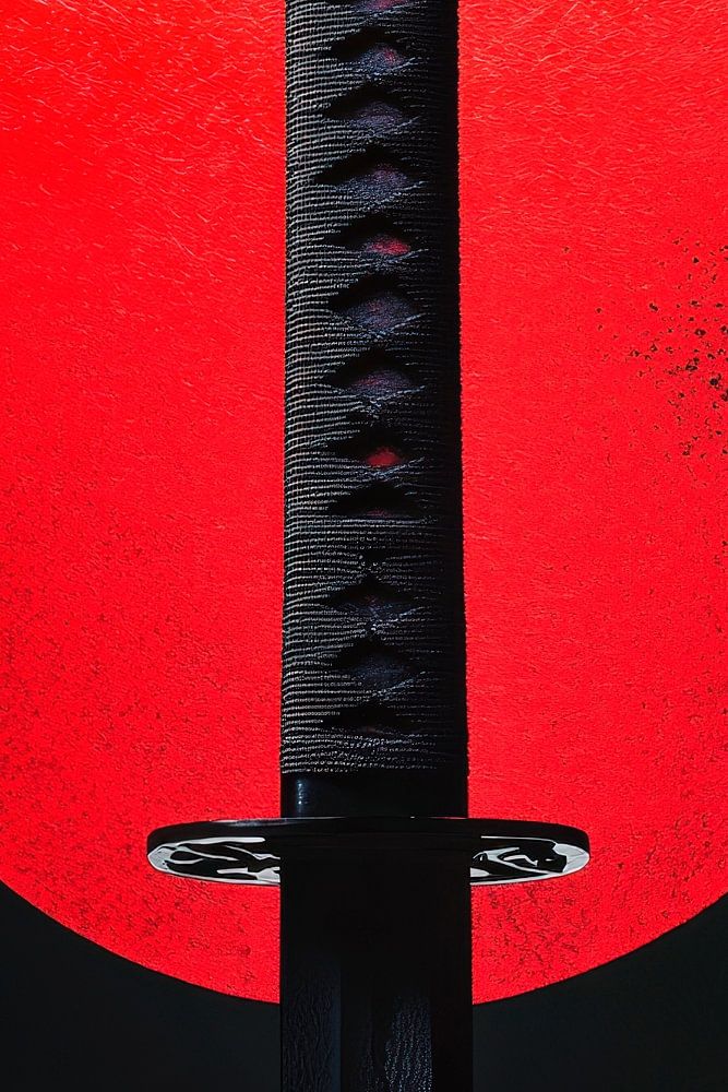 Ein kraftvolles Symbol von Tradition und Stärke vereint sich hier: das elegante Katana vor einem intensiven, leuchtend roten Hintergrund. Die scharfe Klinge und der kontrastreiche Farbton erzeugen eine faszinierende Spannung. Dieses Kunstwerk findet perfekten Platz im Büro oder im Wohnzimmer, wo es inspirierende Gespräche und kreative Gedanken anregen kann.