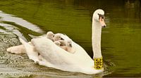 Schwimmender Schwan mit Jungtieren von Bert Schuthof