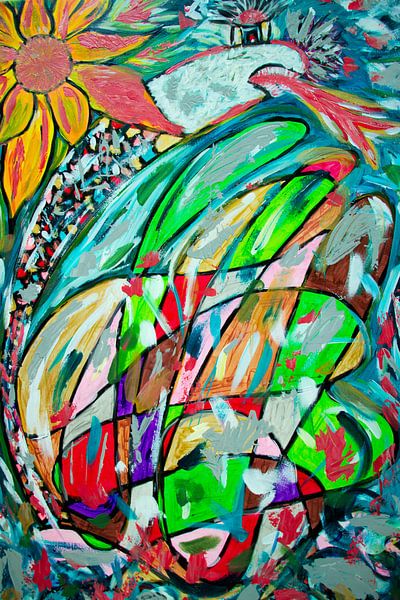 Es wurde viel Farbe verwendet, die das Bild trotzdem fröhlich macht.