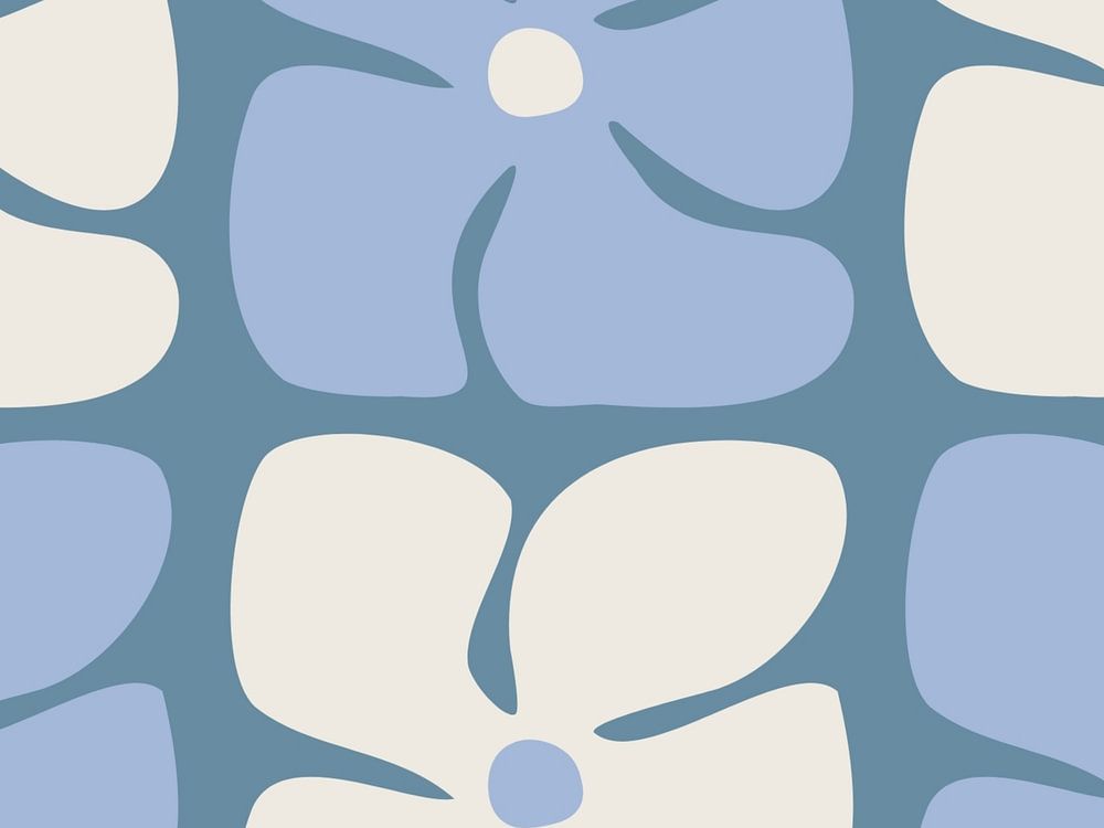 Bestelle dieses Landschafts-Wandbild Sechs stilisierte Blumenmotive in Blau und Weiß von Jolly and Dash als Reproduktion auf Leinwand, Alu-Dibond, als Poster, Fototapete oder Acrylglasbild.