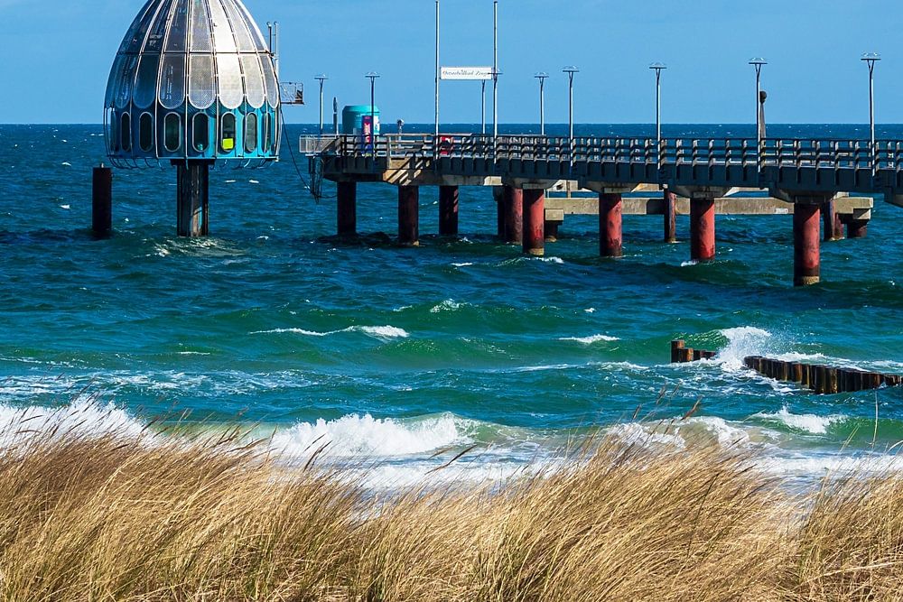 Seebrücke an der Ostseeküste in Zingst auf dem Fischland-Darß.
