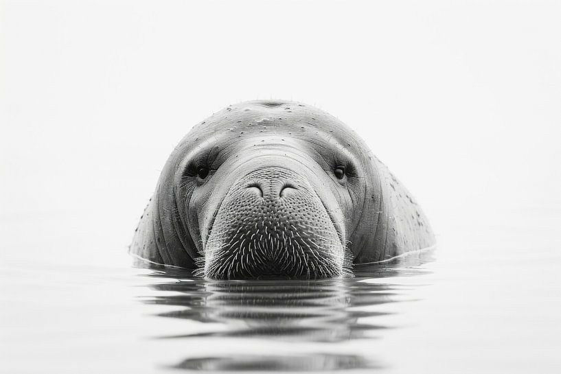 Diese exquisite Schwarz-Weiß-Fotografie einer Seekuh präsentiert die sanfte und friedliche Natur des Tieres in beeindruckender Detailtreue. Die weichen Linien und die ruhige Ausstrahlung der Seekuh werden durch den minimalistischen Hintergrund hervorgehoben, wodurch dieses Kunstwerk sowohl beruhigend als auch visuell ansprechend ist.…