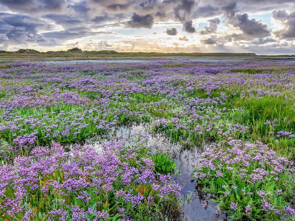 Im Naturschutzgebiet Slufter auf der größten niederländischen Watteninsel Texel wächst und blüht jedes Jahr die wunderschöne lila Pflanze Lamsoor.