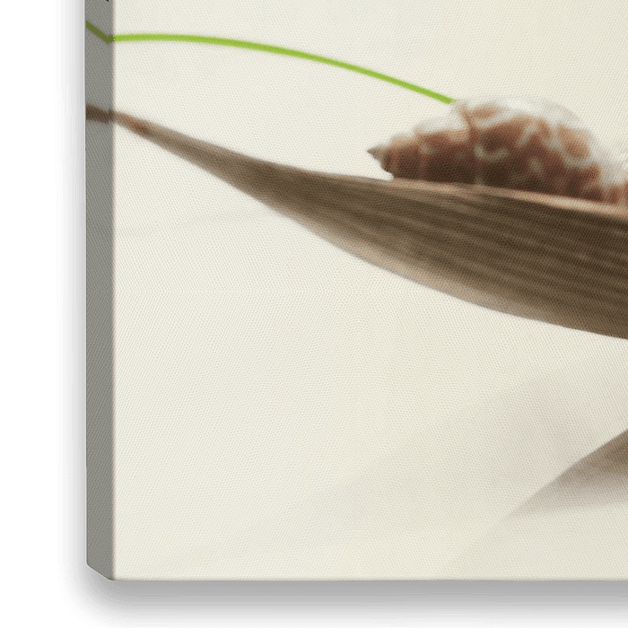 Die Wahl der Materialien wie Muscheln, Gräser und ein Holz Schiffchen lassen dieses Stillleben ruhe und Entspannung vermitteln.