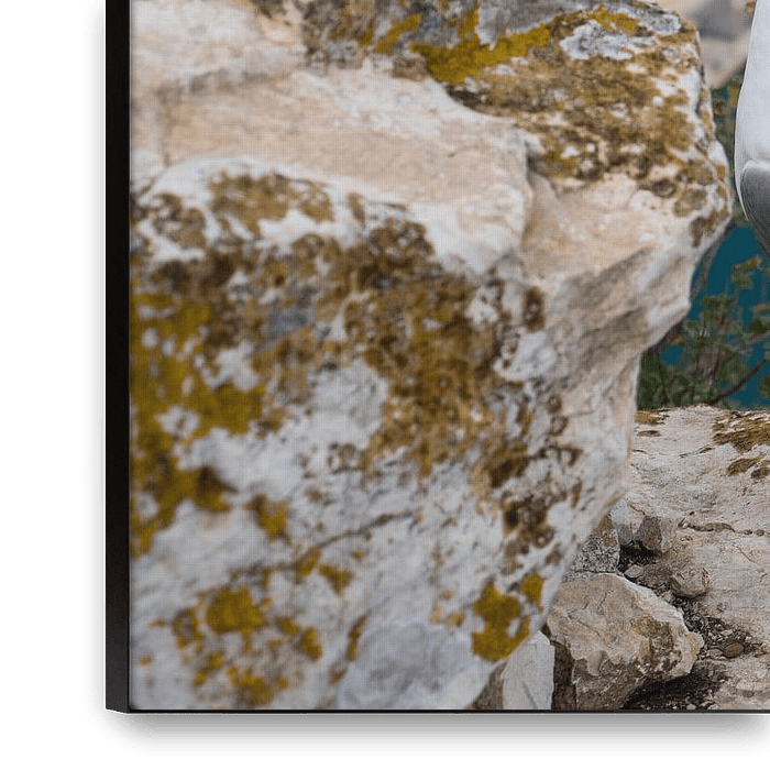Bestelle das Foto Seemöwe blickt auf den Hafen von Calpe von Adriana Mueller als Reproduktion auf Leinwand, Alu-Dibond, als Poster, Fototapete oder Acrylglasbild.