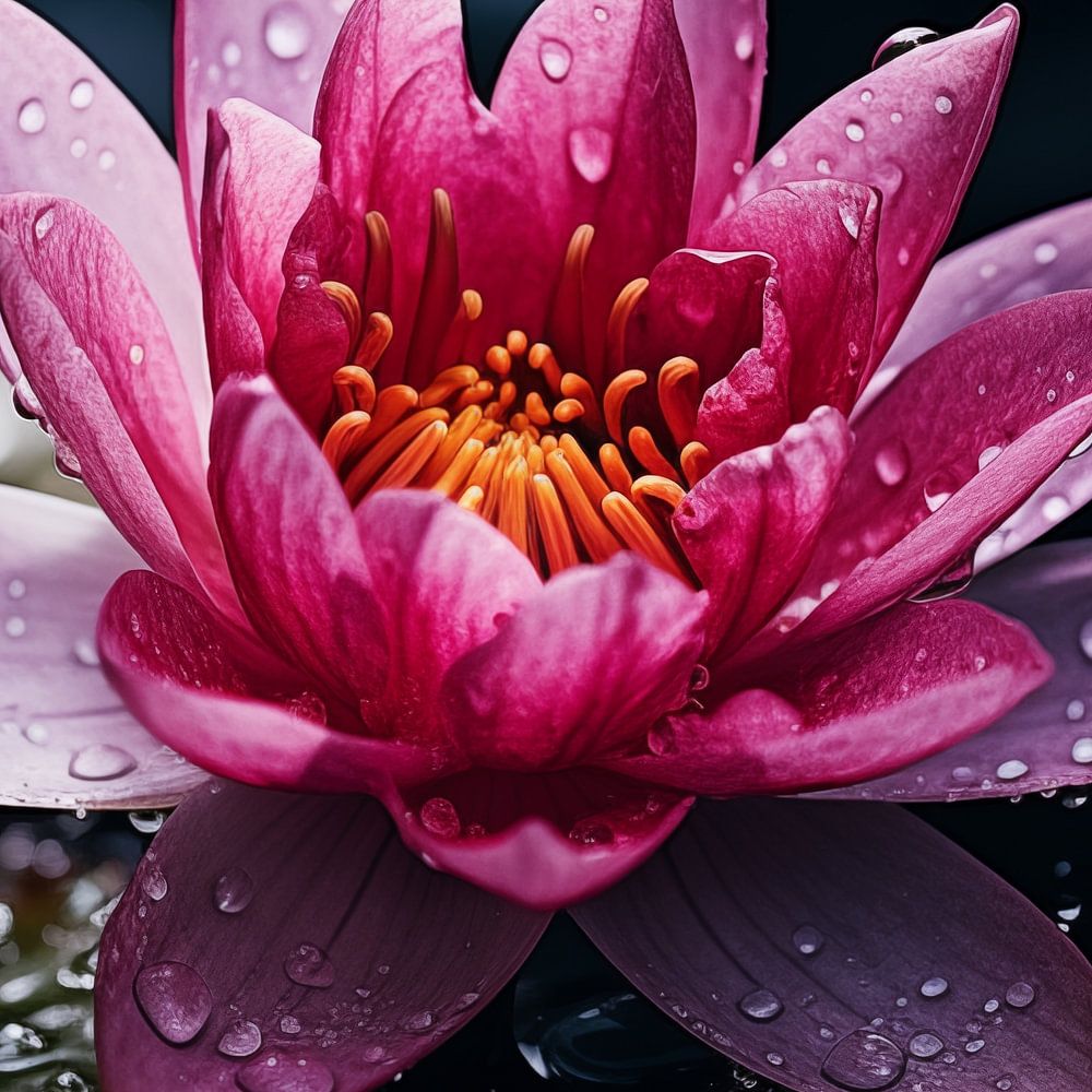 Einzigartiges rosa-lila Seerosengemälde mit atemberaubendem Stil. Mit schönen Farbtönen und einem einzigartigen Design ist dies ein stilvoller Fotodruck, der in jedem Raum gut aussieht.