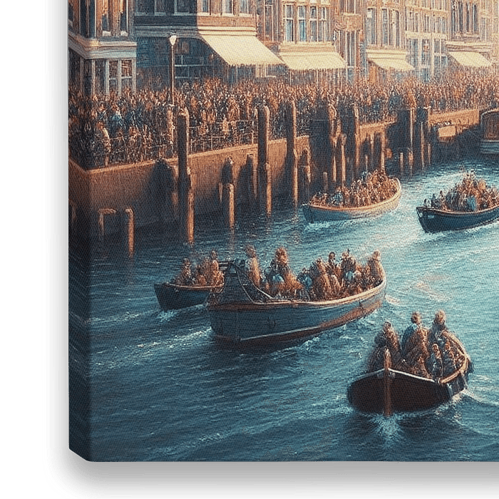 Bestelle das digitale Kunst Bild Segel 2025 Amsterdam AI von Hendrik-Jan Kornelis als Reproduktion auf Leinwand, Alu-Dibond, als Poster, Fototapete oder Acrylglasbild.