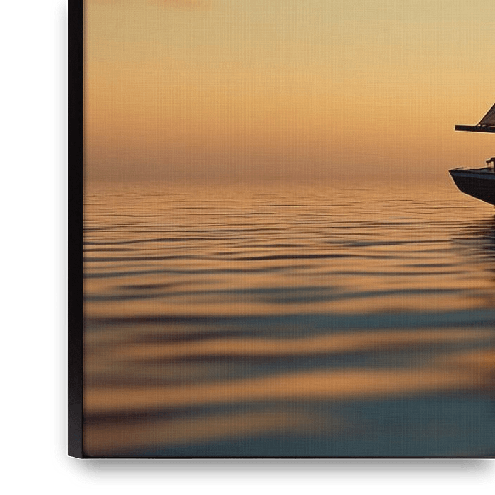Bestelle das digitale Kunst Bild Segelboot bei Sonnenuntergang ruhiges Meer-Panorama von TheXclusive Art als Reproduktion auf Leinwand, Alu-Dibond, als Poster, Fototapete oder Acrylglasbild.