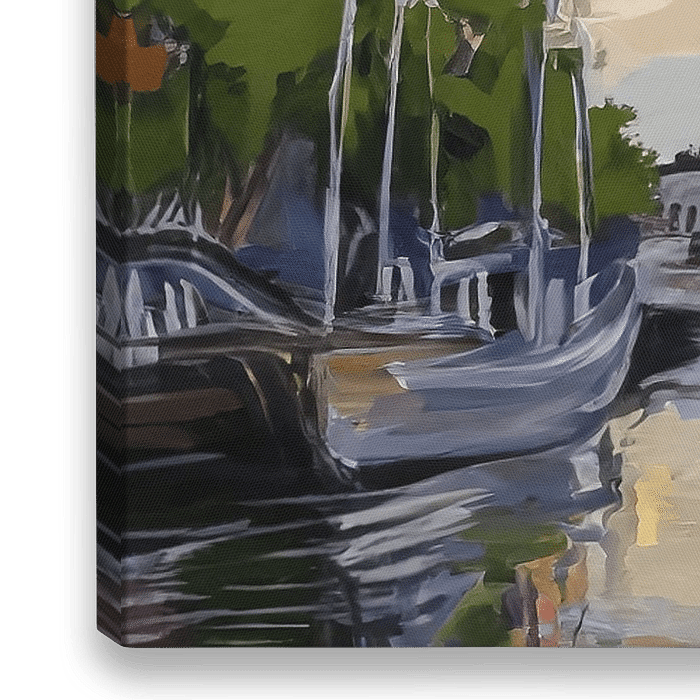 Einzigartige digitale Malerei von Segelbooten in Haarlem, ideal als Wanddekoration. Hergestellt aus einem echten Foto, perfekt für ein beeindruckendes Kunstwerk an der Wand.