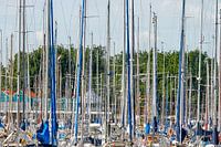 Viele Masten von Segelbooten im Yachthafen