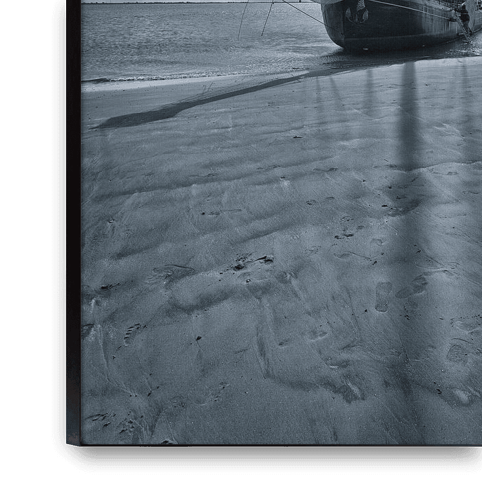Bestelle dieses Landschafts-Wandbild Segelschiff auf einer Sandbank im Wattenmeer von Bas Meelker als Reproduktion auf Leinwand, Alu-Dibond, als Poster, Fototapete oder Acrylglasbild.