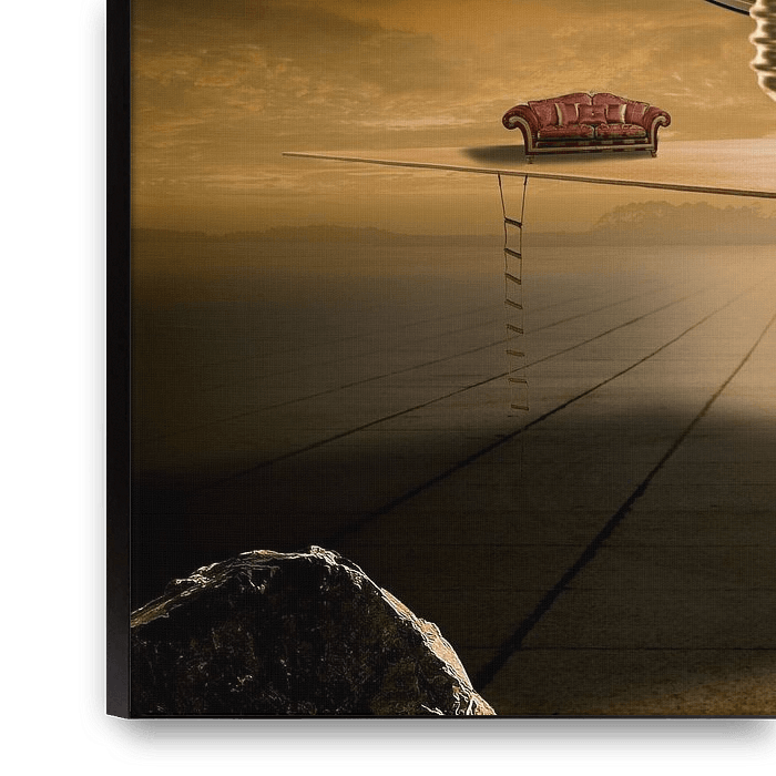 Ihre gewählte Kunst auf Leinwand, gespannt in einem Aluminiumrahmen. Schnell und einfach austauschbar für eine frische Ausstrahlung und ganz nach Ihren Wünschen.