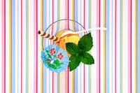 Sommerlicher Genuß mit selbstgemachtem Eis, Minze, Schirmchen und Waffel