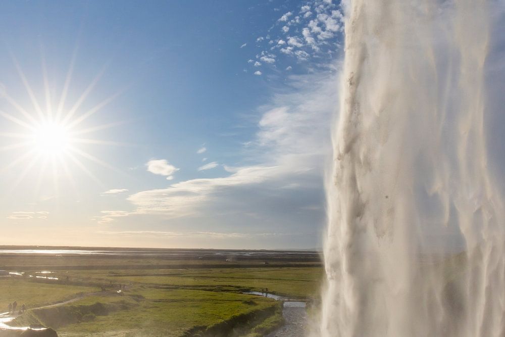 Seljalandsfoss, Blick von hinter dem Wasserfall, Sommer, Island