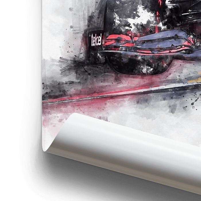 Illustration aus einer Serie weltberühmter Formel-1-Fahrer und ihrer Rennwagen.